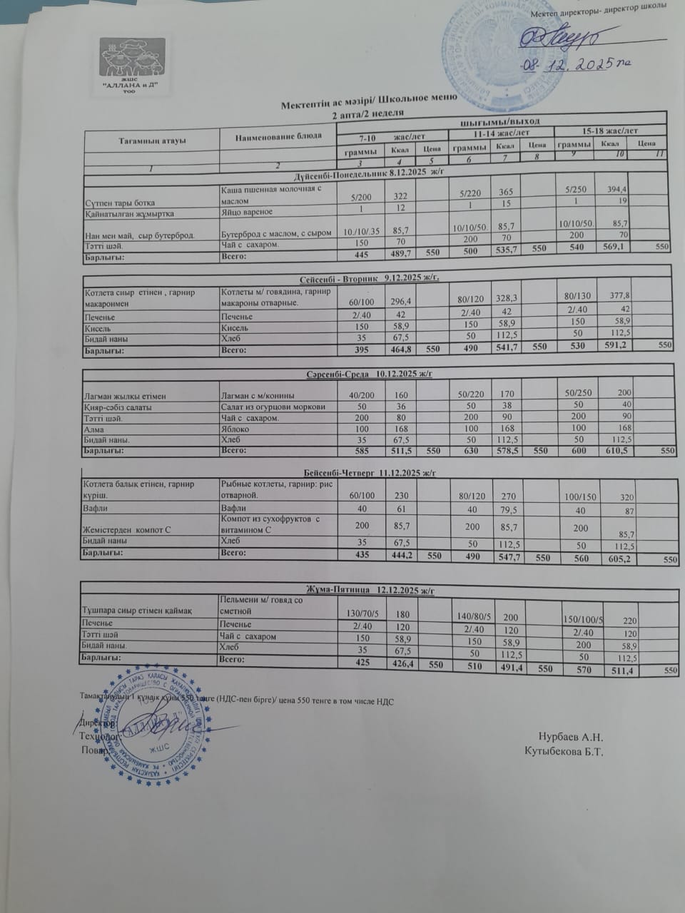 19 желтоқсан 2023 1 апталық ас мәзірі