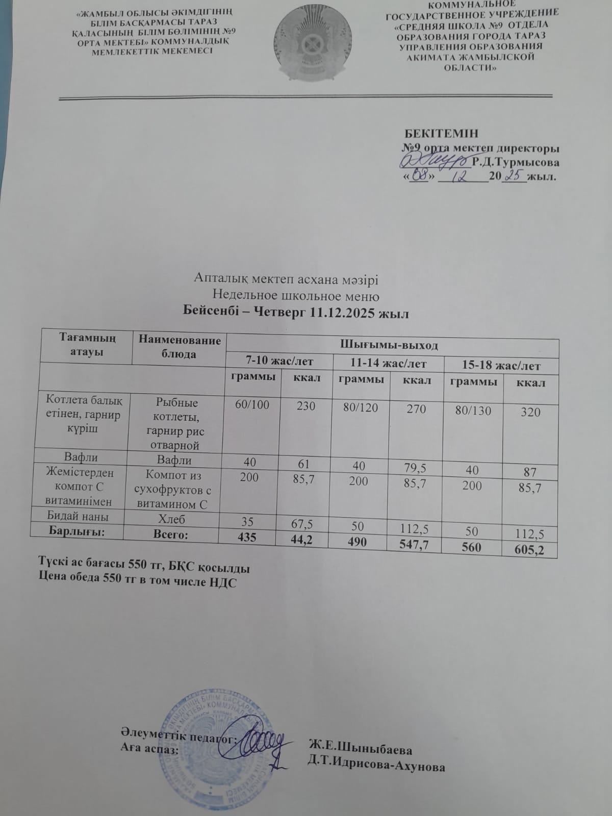 Ас мәзірі » № 9 орта мектеп