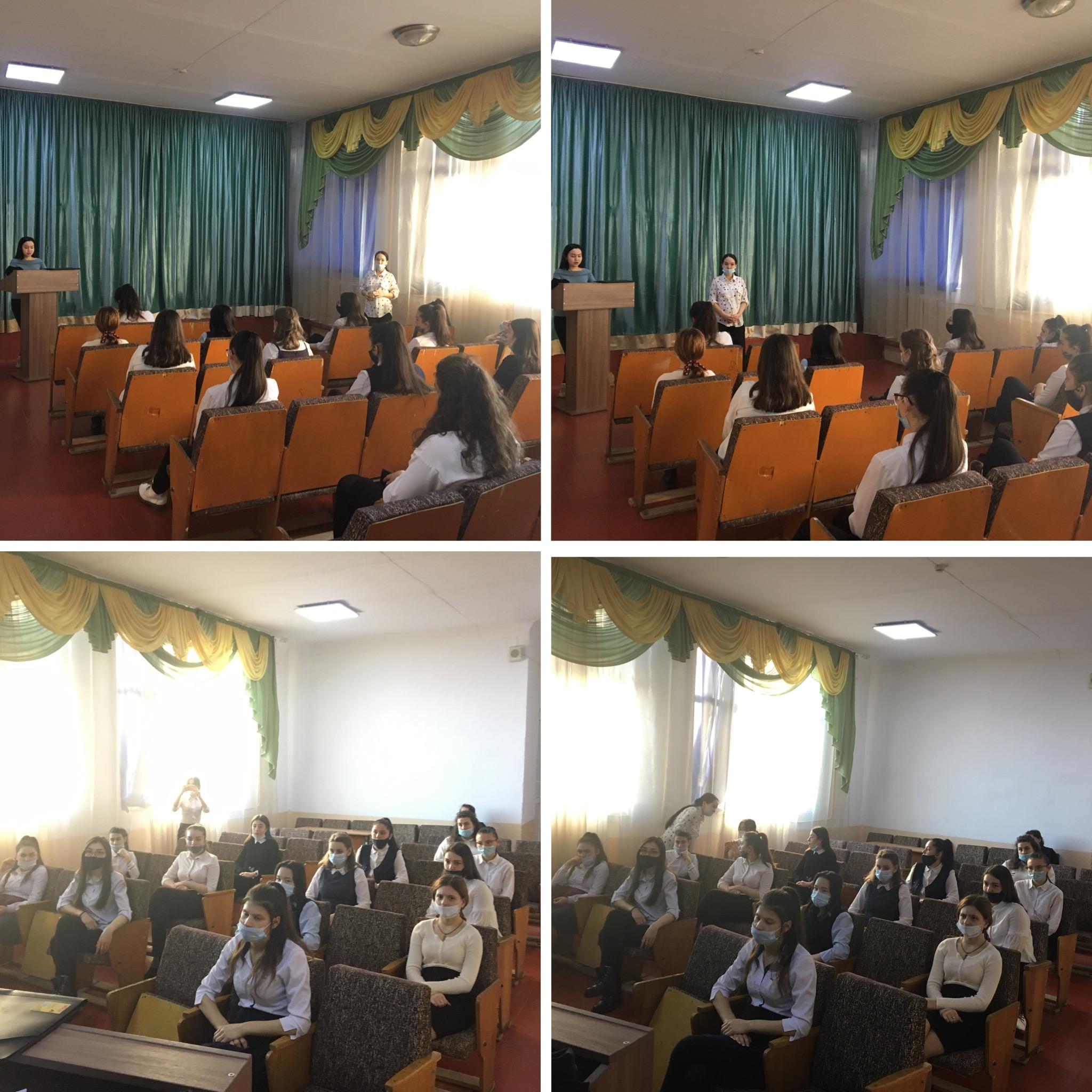 17.02.2021 жылы №9 орта мектепте "Тұрмыстық зорлық-зомбылық" , "Нашақорлық - адамның тәуелділігі" атты тақырыпта 11 сынып оқушыларына