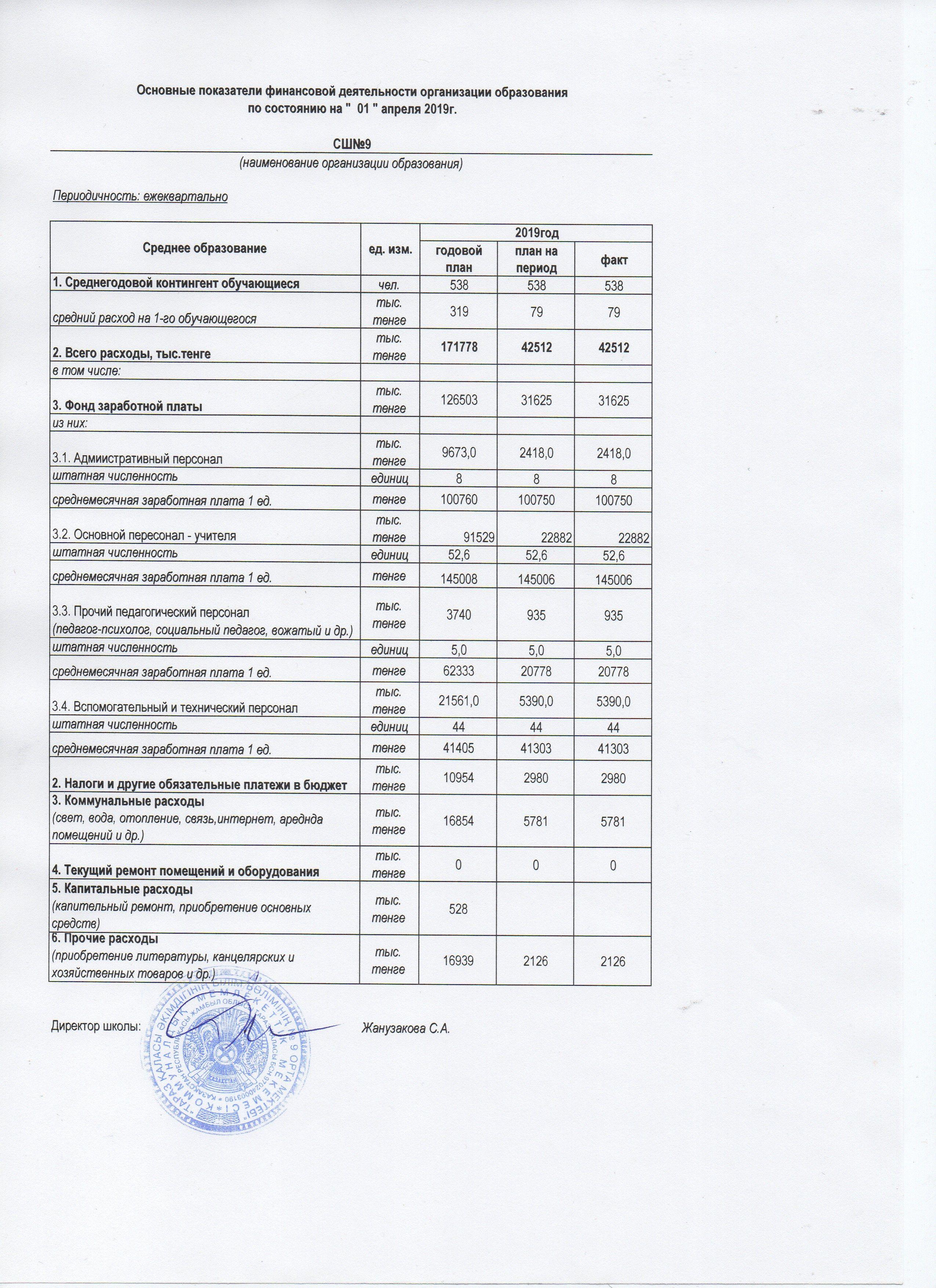 14 мамыр 2019 0 1 2 3 4 5 основные показатели финансовой деятельности организации образования по состоянию на 01.04.2019 г.