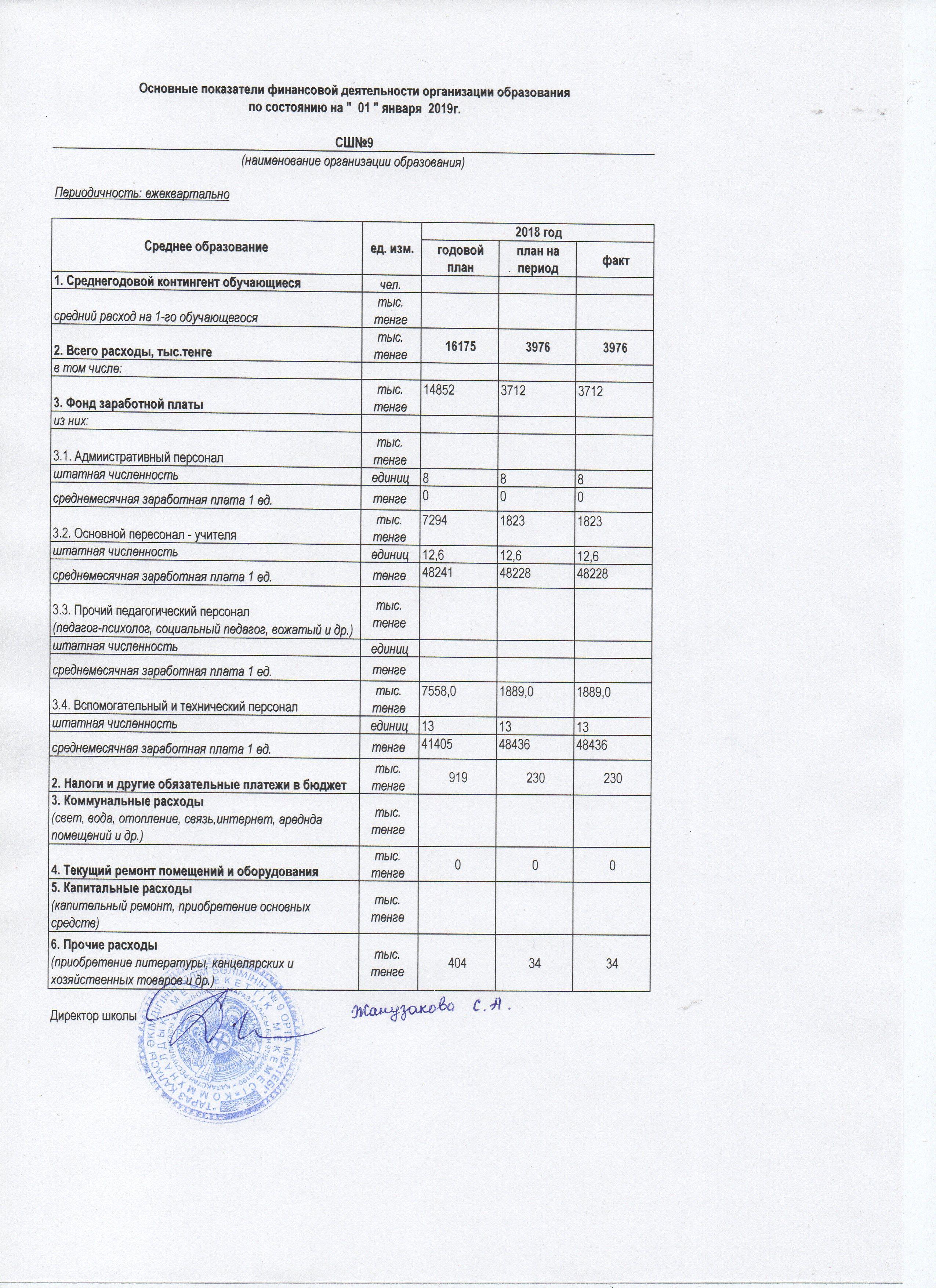 14 мамыр 2019 0 1 2 3 4 5 основные показатели финансовой деятельности организации образования по состоянию на 01.01.2019 г.