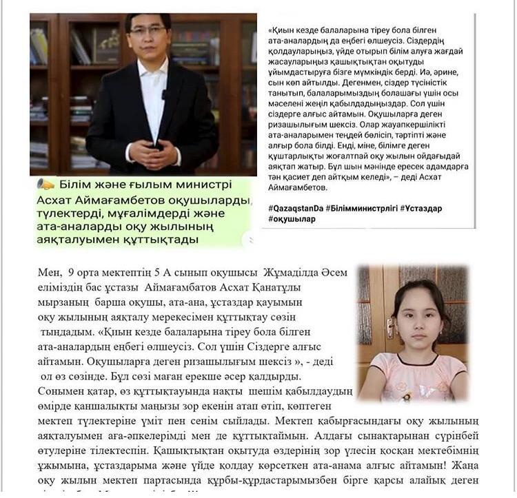 2019-2020 оқу жылыныі аяқталуы 5 "А" сынып » № 9 орта мектеп