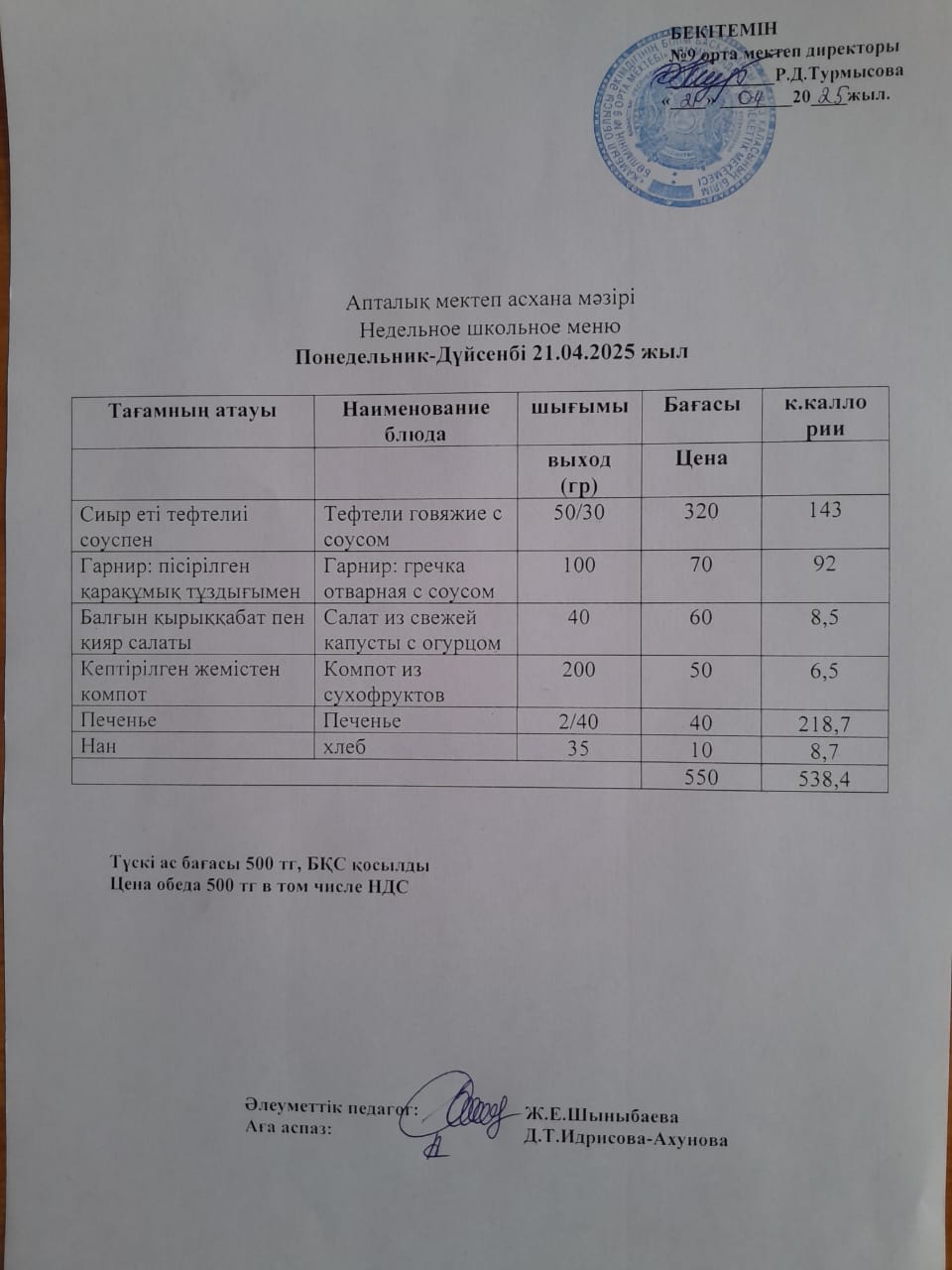 Ас мәзірі » № 9 орта мектеп
