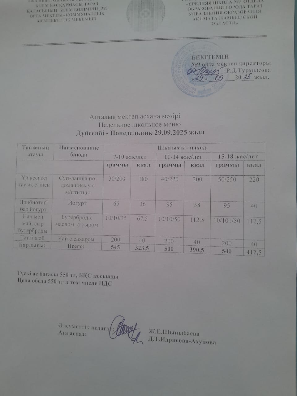 Ас мәзірі » № 9 орта мектеп